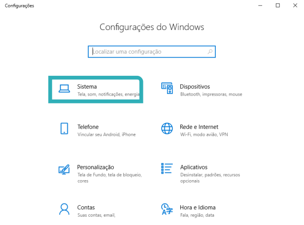 Escolher a opção sistema dentro das configurações.