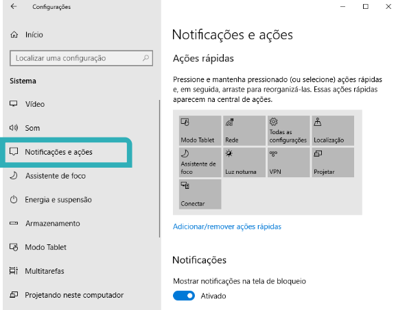 Escolher a opção Notificações e ações.